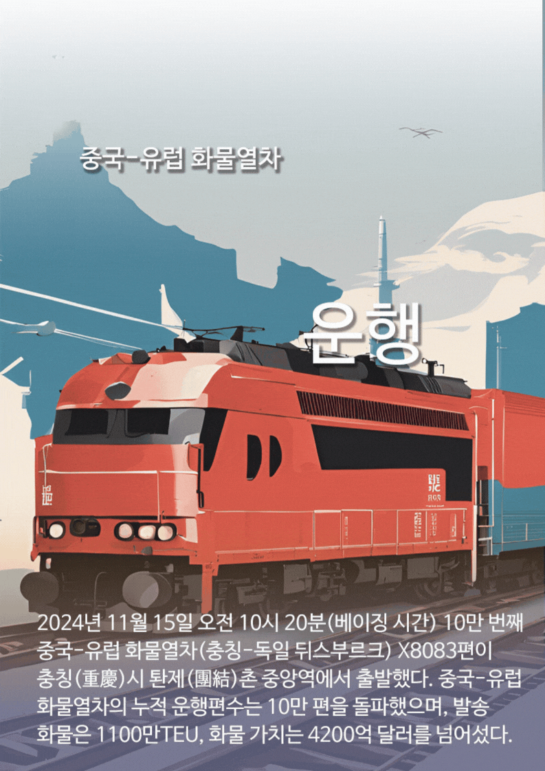 2024? 11? 15? ?? 10? 20?(??? ??) 10? ?? ??-?? ????(??-?? ?????) X8083?? ??(重慶)? ??(團結(jié))? ????? ????. ??-?? ????? ?? ????? 10? ?? ?????, ?? ??? 1100?TEU, ?? ??? 4200? ??? ????.