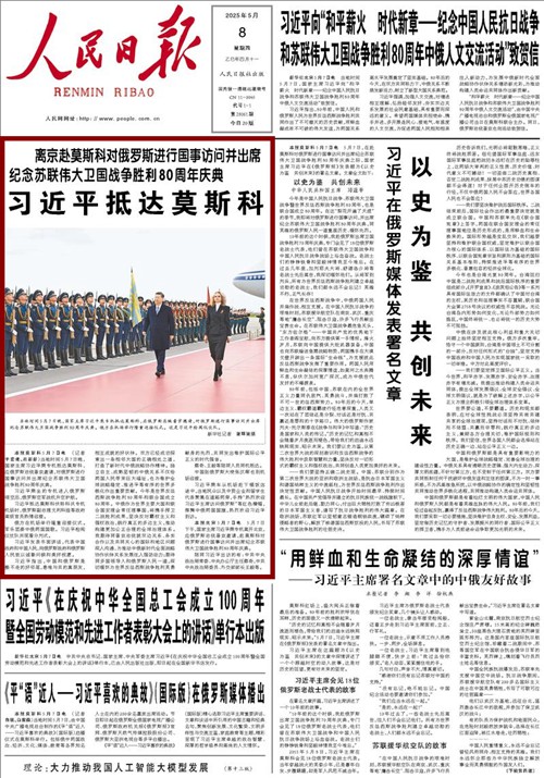 5月7日,在赴莫斯科對俄羅斯進(jìn)行國事訪問并出席紀(jì)念蘇聯(lián)偉大衛(wèi)國戰(zhàn)爭勝利80周年慶典之際,國家主席習(xí)近平在《俄羅斯報(bào)》發(fā)表題為《以史為鑒 共創(chuàng)未來》的署名文章。