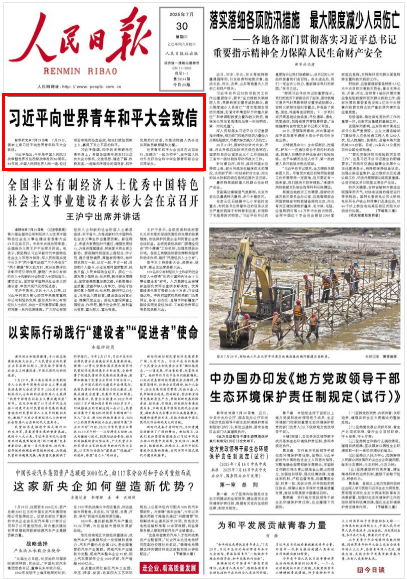 習(xí)近平向世界青年和平大會(huì)致信